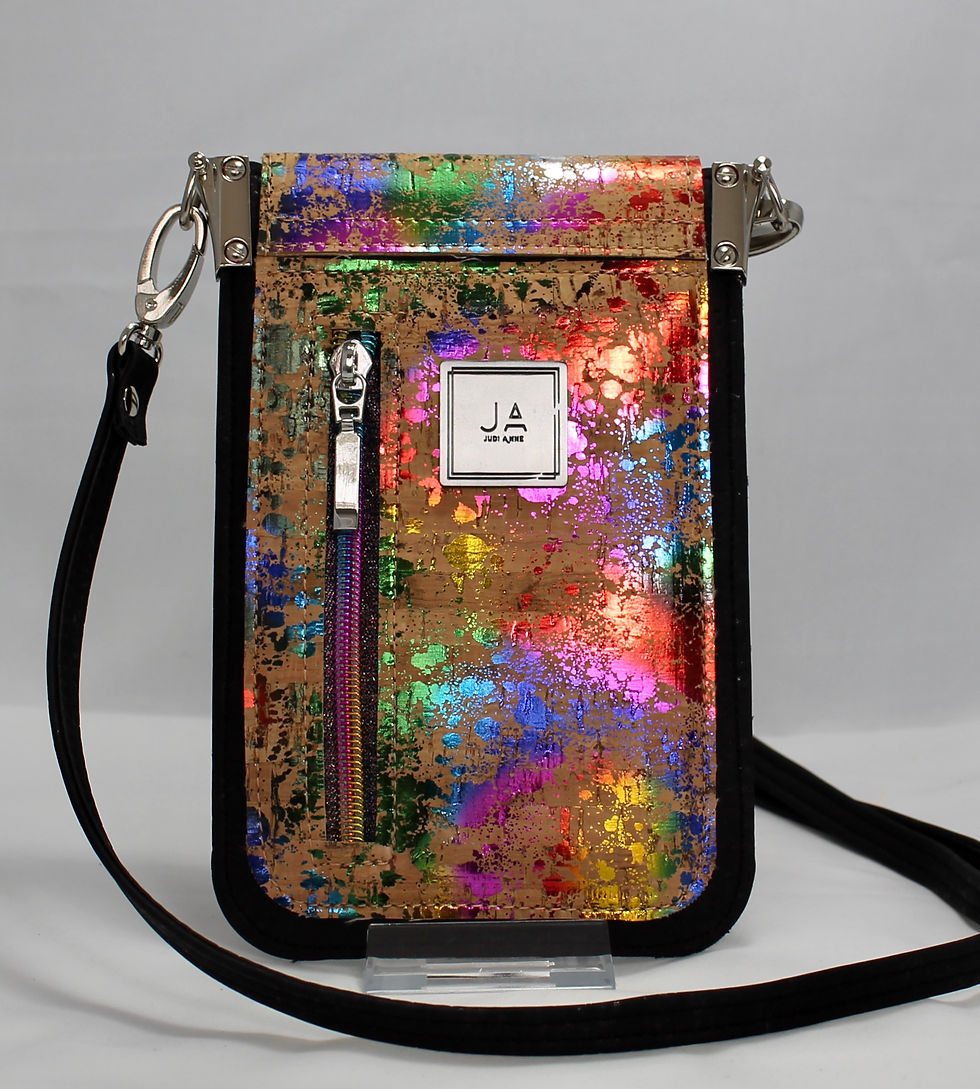 Cell Phone Cross Body Handbag -Rainbow Shimmer & Black